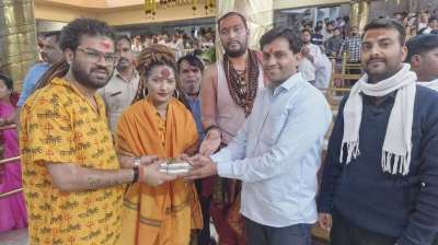भगवा वस्त्र में तिलक लगा बाबा महाकाल के दर पर भजन गायिका शहनाज अख्तर ने लगाया ध्यान