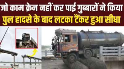 गुजरात पुल हादसा: गुब्बारों की मदद से नदी में फंसे टैंकर को निकाला गया, देखें वीडियो