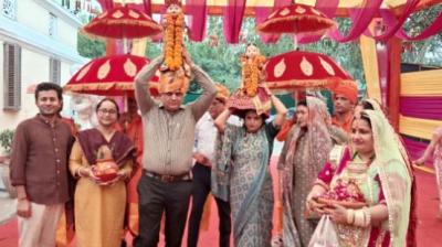 बीकानेर हाउस में आयोजित राजस्थान उत्सव में निकाली गई गणगौर की सवारी