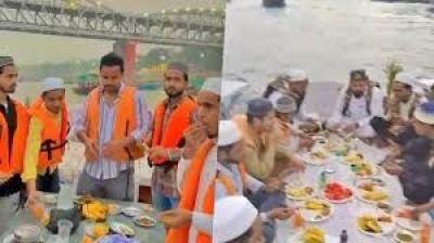 गंगा के बाद अब मंदिर के पास उड़ाई इफ्तार की दावत, वायरल वीडियो से मचा हड़कंप