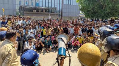 नोएडा में कर्मचारियों के प्रदर्शन ने लिया हिंसक रूप, सेक्टर-80 में पथराव और लाठीचार्ज