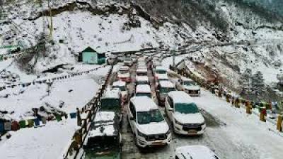 त्सोमगो झील मार्ग बंद, भारी बर्फबारी से पर्यटकों में हड़कंप