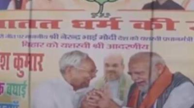 बिहार में जीता सनातन धर्म: नीतीश-मोदी की तस्वीर वाले लगे पोस्टर