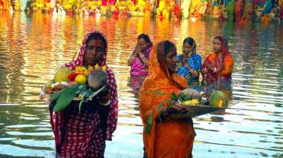 छठ पूजा पर ट्वीनसिटी में अस्ताचलगामी सूर्य को अद्र्ध देने नगर के तालाबों में पहुंचे उत्तर भारत के लाखों लोग