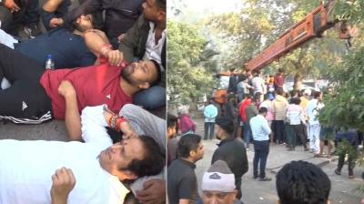 सियासत की गर्मी बढ़ी, रायपुर में पूर्व विधायक ने सड़क पर लेटकर किया चौपाटी हटाने का विरोध
