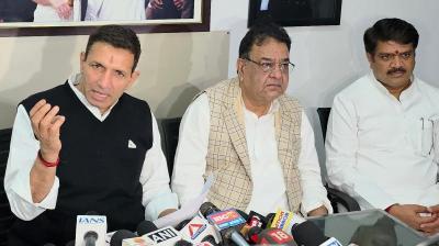 AI समिट में हंगामे के खिलाफ BJP का हल्ला बोल, कांग्रेस ऑफिस के सामने प्रदर्शन