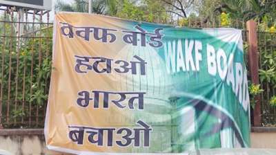 भोपाल में लगे वक्फ बोर्ड वक्फ बोर्ड हटाओ भारत बचाओ के लगे पोस्टर