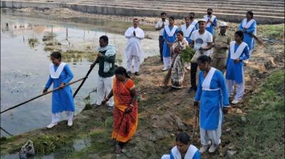 खुले खेत में सामूहिक रूप से पकाया जाता है भोजन