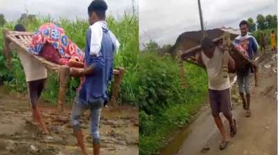 गर्भवती को खाट पर ले जाने को मजबूर हुए परिजन, सिंगरौली में सड़क अब तक नहीं बनी