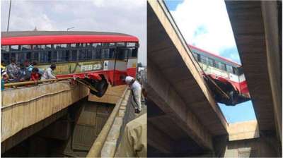 यात्रियों की सांसें थमीं: चालक ने बहाव में उतारी बस, पुल से लटकती रही गाड़ी