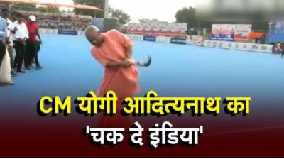 हॉकी मैदान में सीएम योगी का नया अंदाज, खिलाड़ियों को प्रोत्साहित करने के लिए खुद मैदान पर उतरे और शॉट लगाया