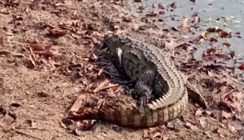 तालाब से स्कूल तक पहुंचा 10 फिट लंबा मगरमच्छ