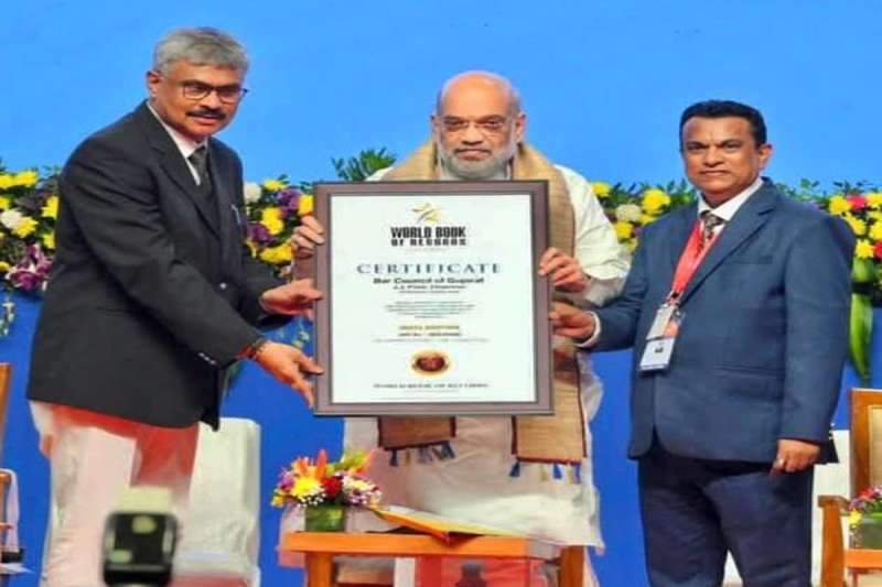 वर्ल्ड बुक ऑफ़ रिकॉर्ड्स का प्रमाण-पत्र बार काउंसिल ऑफ गुजरात को प्रदान करते गृह मंत्री अमित शाह