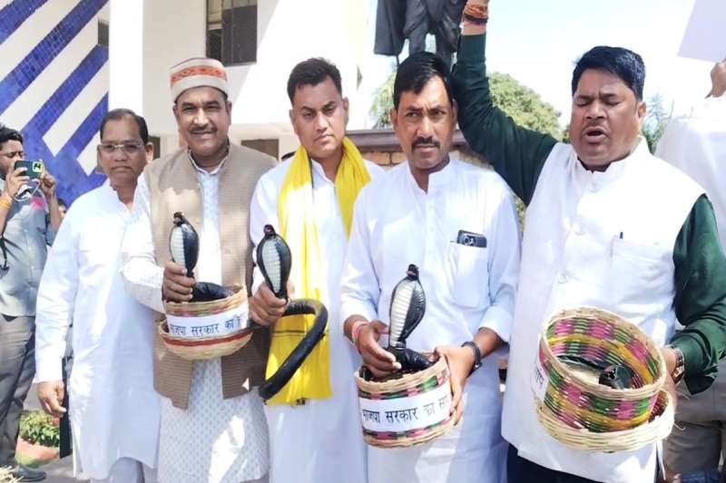 नकली सांप लेकर विधानसभा भंग करने पहुंचे कोंग्रेसी विधायक, भाजपा विधायक बोले- 'एक दूसरे को डस रहे'