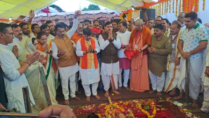 खंडवा: संत दादाजी धूनी वाले के भव्य मंदिर निर्माण के भूमि पूजन के लिए सीएम मोहन यादव खंडवा आए. श्री दादाजी धूनी वाले के भव्य मंदिर निर्माण का भूमि पूजन करते हुए मुख्यमंत्री ने कहा कि ''दादाजी धूनीवाले से अहंकार मुक्त और भक्ति से युक्त होने की अथाह प्रेरणा मिलती है. मंदिर निर्माण से खंडवा जिले का आध्यात्मिक विकास होगा और पूरे देश में सांस्कृतिक पर्यटन का केंद्र बनेगा.''