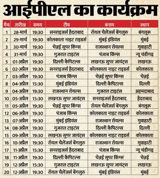 बीसीसीआई ने आईपीएल शेड्यूल घोषित किया, लीग मुकाबले 24 मई तक, प्लेऑफ की भी मिली जानकारी