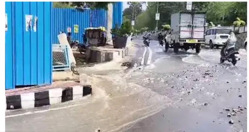पाइपलाइन फूटने के कारण भारी मात्रा में पानी सड़क पर भर गया और तेज बहाव की स्थिति बन गई। इससे वहां से गुजर रहे वाहन चालकों को काफी परेशानी का सामना करना पड़ा। कई वाहन पानी के तेज बहाव में फंसते नजर आए, वहीं कुछ लोगों ने जोखिम उठाकर किसी तरह रास्ता पार किया। स्थिति को देखते हुए कुछ समय के लिए यातायात भी प्रभावित रहा।