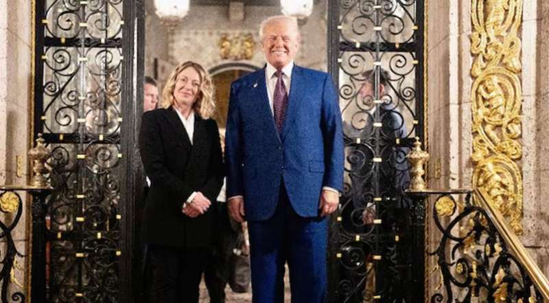 ट्रंप ने शनिवार को अपने आवास में मेलोनी का स्वागत करते हुए कहा, "यह बहुत रोमांचक है। मैं यहां एक शानदार महिला, इटली की प्रधानमंत्री के साथ हूं। उन्होंने वास्तव में यूरोप में तूफान ला दिया है।"