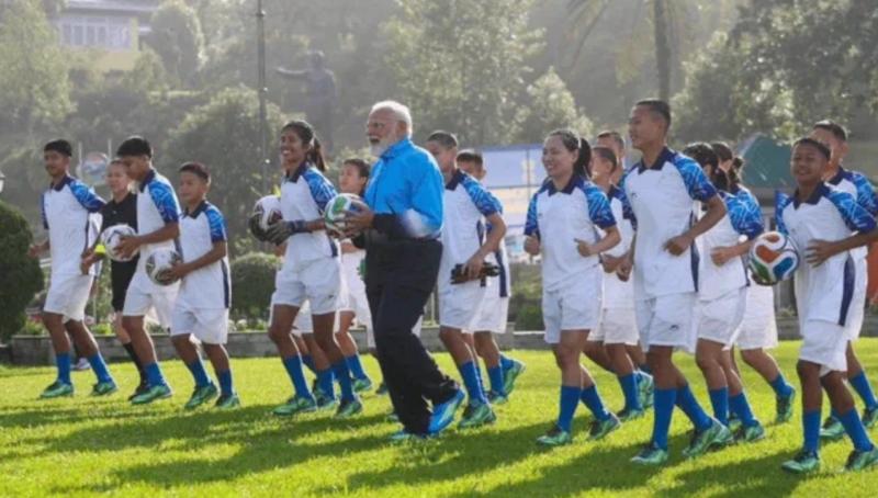 Gangtok में PM मोदी का युवा कनेक्शन, फुटबॉल खेलते नजर आए