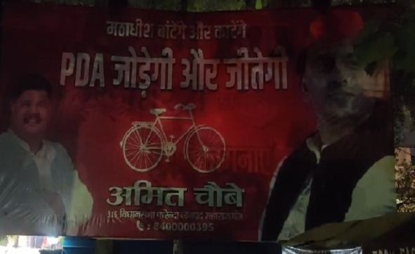 लखनऊ। यूपी विधानसभा उपचुनाव से पहले समाजवादी पार्टी और भारतीय जनता पार्टी के बीच पोस्टर वॉर जारी है। शनिवार को सपा मुख्यालय के ठीक सामने एक नया पोस्टर लगाया गया है। जिसकी वजह से एक बार फिर यूपी की सियासी गलियारों में पोस्टर वार की चर्चाएं जोरो पर हैं। समाजवादी पार्टी नेता अमित चौबे की ओर से अखिलेश यादव की फोटो के साथ एक नया पोस्टर लगाया गया है। जिसमें लिखा गया है कि मठाधीश बाटेंगे और काटेंगे, पीडीए जोड़ेगी और जीतेगी। ऐसे में समाजवादी पार्टी लगातार पोस्टर वॉर के जरिए सत्तारूढ़ पार्टी बीजेपी पर दबाव बना रही है। गौरतलब है कि अगस्त महीने के आखिर में बांग्लादेश में हुए हिंदुओं पर नरसंहार का हवाला देकर कहा था कि बटेंगे तो कटेंगे। साथ ही उन्होंने यह भी कहा कि बटना नहीं है। एक रहेंगे तो नेक रहेंगे और सुरक्षित रहेंगे। ऐसे में उपचुनाव की तारीखों के ऐलान के बाद यह नारा तेज हो गया है। इसके काट में विपक्षियों पार्टियों द्वारा मुख्यत: सपा द्वारा लगातार नया-नया पोस्टर निकाला जा रहा है।
