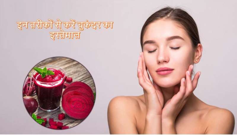चुकंदर को फेस पैक या फेस मास्क की तरह इस्तेमाल करने से ये चेहरे पर इंस्टेंट पिंकिश ग्लो लाता है, जिससे चेहरा खिला खिला दिखता है। साथ ही रोजाना इसे खाने से स्किन फ्रेश दिखती है, ये हमेशा हाइड्रेटेड बनी रहती है और स्किन की इलास्टिसिटी भी बढ़ती है। चुकंदर होंठो पर मौजूद हाइपरपिगमेंटेशन को भी दूर करता है और इन्हें नेचुरल पिंक बनाता है।