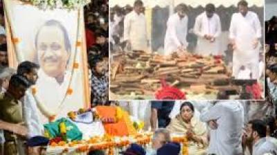 बेटों की आंखों में आंसू, पिता अजित दादा को दी मुखाग्नि